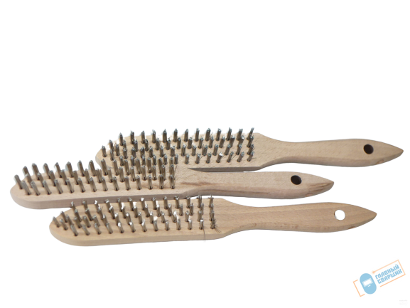 Деревянная рукоятка проволочной стальной щетки удобно располагается в руке и имеет специальное