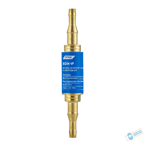 Клапан огнепреградительный кислородный КОК-Р (в разрыв рукава) предназначен для защиты от противотока газа, а также для защиты от разрыва кислородного резинотканевого рукава и его возгорания при обратном ударе пламени.
